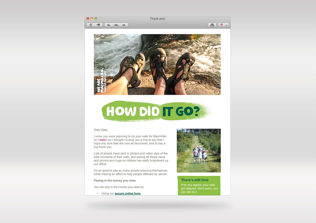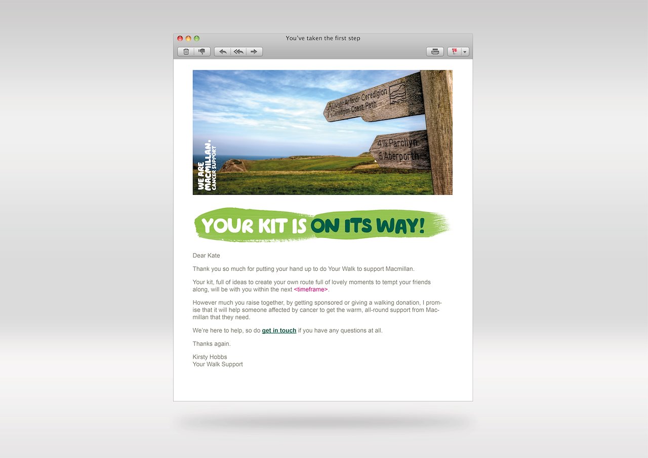 Emails, DM, banners and a kit. All you need to entice people to do a sponsored walk.